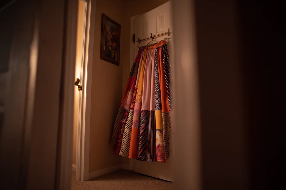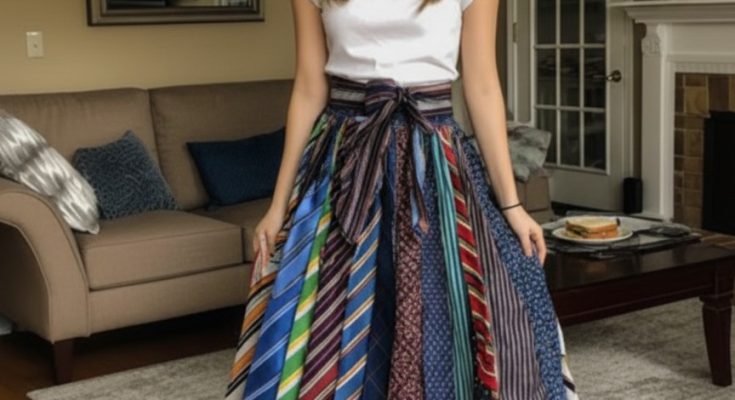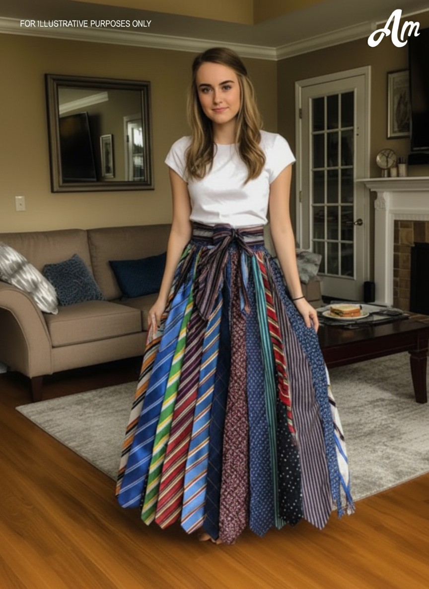 So, I taught myself to sew. I watched YouTube videos until three in the morning, practiced stitches on old fabric scraps, and slowly, carefully stitched his ties together into a long, flowing skirt.