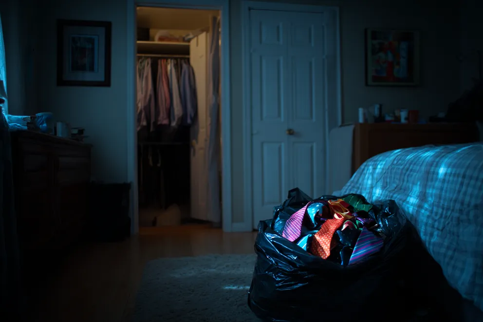 “There’s no point in keeping all this junk around,” she said, tossing his beloved ties into a black trash bag without even looking at them.