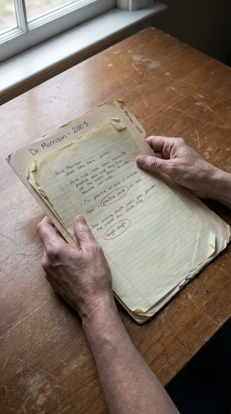 The tab read “Dr. Morrison – 2003” in my father’s neat handwriting. I almost tossed it in the shred pile without looking, but something made me pause. 2003. I would have been seven years old that year. My brother Jacob was four, and my sister Emma hadn’t been born yet.