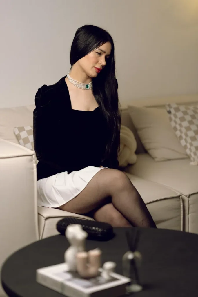 A stylish woman sitting on the couch | Source: Pexels