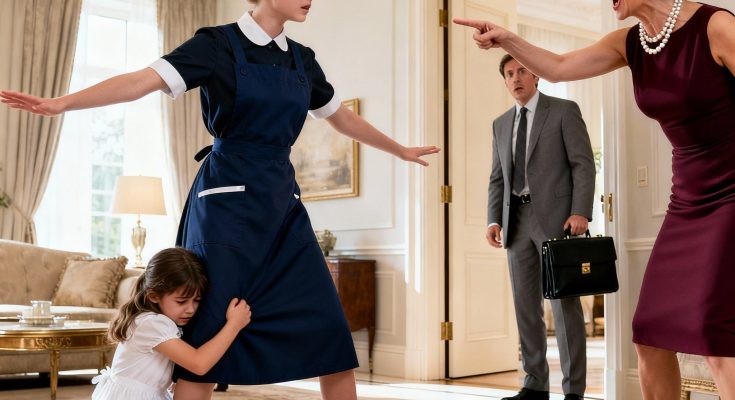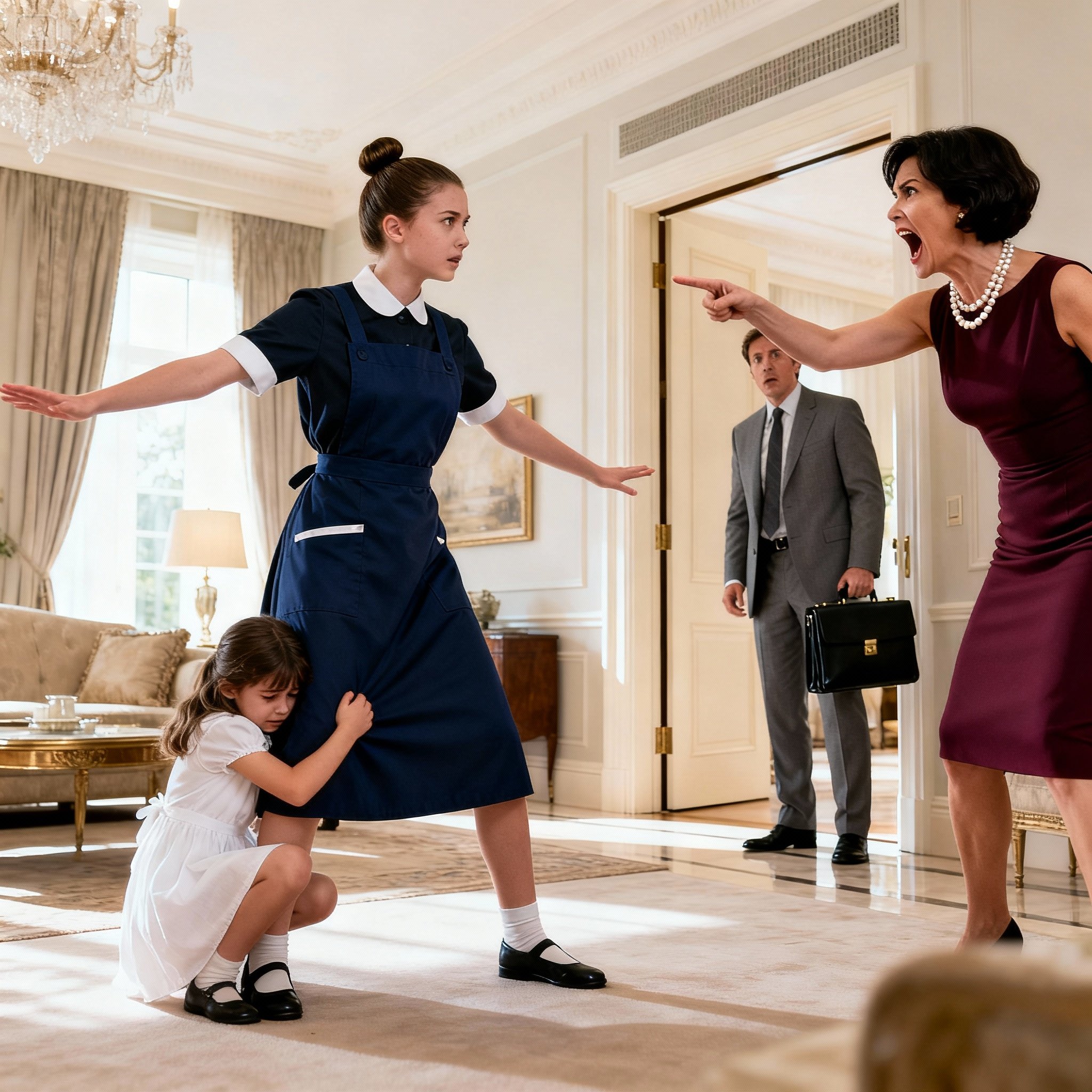 “It’s just that… Maria,” she said, pointing to the employee who was still on the floor. “She provoked me! She was turning the girl against me! Sofia threw the juice at me on purpose to ruin my dress!”